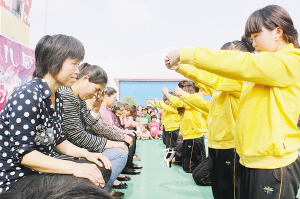 5月10日,項城市高寺鎮一所幼兒園舉行感恩母親文藝演出,全體幼兒教師集體跪拜母親,以表感激之情。