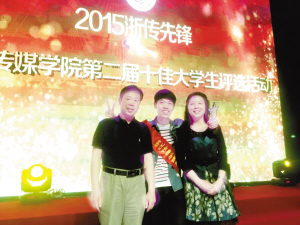 本報(bào)訊 (記者 張猛 文/圖)“翩翩少年逐夢(mèng)而來,帶著‘一日看盡長(zhǎng)安花’的豪氣勇敢面對(duì)所有困難。無畏逆境,玉汝于成,你用畫筆描繪下你的熱情與希望,從來不曾停下創(chuàng)作的執(zhí)著腳步……”這是5月4日舉辦的浙江傳媒學(xué)院“第二屆十佳大學(xué)生”頒獎(jiǎng)典禮上,主持人現(xiàn)場(chǎng)宣讀的該院動(dòng)畫學(xué)院學(xué)子朱鑫宇當(dāng)選“十佳大學(xué)生”的頒獎(jiǎng)詞。之前,經(jīng)本報(bào)、杭州日?qǐng)?bào)及網(wǎng)絡(luò)等媒體報(bào)道,這名即將走出大學(xué)校門的動(dòng)漫專業(yè)才子備受社會(huì)各界關(guān)注,其原創(chuàng)漫畫日前登上央視一套“新聞聯(lián)播”等欄目。
