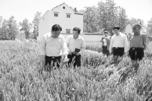 5月12日,縣委書記王國璽深入田間地頭實地察看,調研夏糧生產情況,并對當前麥田管理工作提出指導性意見。(劉曉剛 攝)