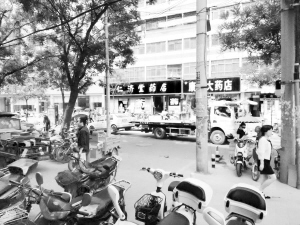 周口市工農路北段人社局服務大廳門前,亂停的車輛占據快車道,嚴重影響道路通行,被執法的交警用拖車拖走。