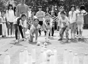 安徽亳州:留守兒童大學校園歡樂迎“六一” 5月24日,在安徽省亳州職業技術學院,幾名留守兒童在玩“保齡球”游戲。當日,安徽省亳州職業技術學院邀請譙城區牛集鎮安溜小學50多名留守兒童來到大學校園,開展“放飛夢想迎六一”主題活動。大學生與孩子們一起進行了各種趣味游戲,讓孩子們提前過了一個開心的“六一”兒童節。新華社發