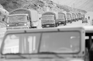 5月22日,西藏軍區日喀則軍分區運輸車隊幫助群眾轉移財產。新華社發