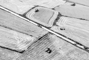 這是5月25日在江蘇省淮安市盱眙縣桂五鎮航拍的麥收現場。近日,我國夏糧主產區小麥作物自南向北陸續開鐮收割。
