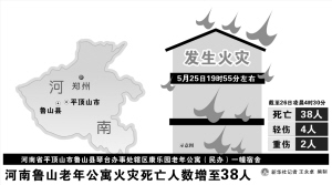 據新華社鄭州5月26日電 記者從河南省平頂山市政府獲悉,5月25日晚發生火災的魯山縣康樂園老年公寓已有12名相關責任人被控制,還有3人正在查找落實。