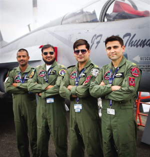上圖:6月15日,在法國巴黎北郊布爾歇機場,“梟龍”戰機巴方飛行員、地勤人員等在機身旁留影。