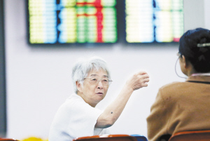 6月16日,兩名股民正在一家證券營業部大廳交流。當日,滬深股市雙雙下跌,其中滬指跌破4900點。截至收盤,滬指報收于4887.43點,跌3.47%;深指報收于17075.93點,跌3.54%。(丁汀 攝)