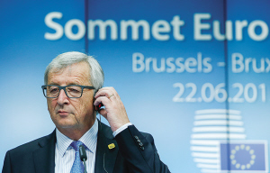 6月22日,在比利時布魯塞爾的歐盟總部,歐盟委員會主席容克在歐元區(qū)領導人緊急峰會后出席新聞發(fā)布會。 歐洲理事會主席圖斯克在會后新聞發(fā)布會上說,希臘提交的新版改革方案是“積極的一步”,歐元集團將于24日完成對新方案的評估。