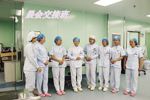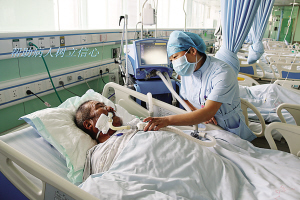 當(dāng)然,護(hù)理工作并非一帆風(fēng)順。眾所周知,ICU收治的都是重癥患者,患者大多數(shù)都有精神障礙,譫妄、昏迷、煩躁不安等狀況很常見,這就需要護(hù)士們充滿耐心和愛心。張衛(wèi)華以實(shí)際行動(dòng)詮釋人間大愛。2014年8月,科室里來了一名Ⅱ級(jí)肝性腦病的男性患者,已經(jīng)精神錯(cuò)亂且不認(rèn)人,行為非常危險(xiǎn)。由于該病不能使用鎮(zhèn)靜藥物,當(dāng)責(zé)任護(hù)士靠近患者時(shí),患者拿起床頭柜上的一個(gè)玻璃瓶向護(hù)士砸去。作為護(hù)士長的張衛(wèi)華見此情景,臨危不懼,用自己的身軀保護(hù)責(zé)任護(hù)士。只聽見啪的一聲,鮮血順著她的臉頰流了下來,可她還是慢慢走向那名患者,輕聲向他解釋情況以安撫其情緒。患者的情緒漸漸地穩(wěn)定下來,她才去處理傷口,并輕松地說:“只要沒傷著病人就好。”有一次,科室里來了一名心梗住院的老人,老人的孩子都在外地,得知老人生病住院也沒趕回來照顧,甚至連一句問候都沒有。老人除了要忍受著病痛的折磨,還要忍受對(duì)孩子們的思念。張衛(wèi)華見此情景,非常心疼,為安慰老人,上班期間她都會(huì)去陪老人聊天,哄老人開心。老人吵著不舒服的時(shí)候,張衛(wèi)華用藥緩解,同時(shí)耐心安撫老人。晚上老人因?yàn)楹⒆拥氖虑椋瑫?huì)像一個(gè)小孩兒一樣哭泣不止,張衛(wèi)華心疼地陪在老人身邊,一遍又一遍地安慰說:“別害怕,我在您身邊,我就是您的女兒。”