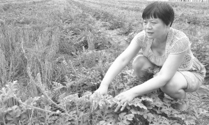 收獲一地金黃,蹦出滿眼綠色。扶溝縣麥子收割后,套種的西瓜快速生長,瓜秧爬上麥茬,透氣性好,濕氣容易排出,不易發生死棵、爛棵。圖為瓜農正在整理瓜秧。(谷志方 攝)