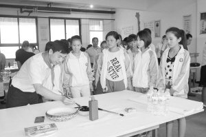 為弘揚優良傳統文化,營造熱愛書法繪畫藝術的良好氛圍,6月23日,項城市文聯邀請部分書畫家走進項城市清華育英學校,開展了“書畫家進課堂”活動,讓師生們充分感受到了書畫的藝術魅力,激發了大家的學習熱情。圖為書法家為該校師生示范毛筆字的寫法。