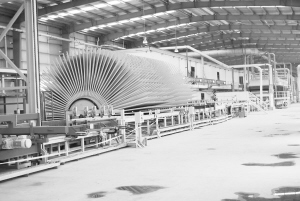 左圖:開發區大河林業有限公司為河南省林業產業化重點龍頭企業,公司充分利用當地豐富的林業資源,努力打造周口林產品深加工基地。圖為廠區中高密度板生產車間。