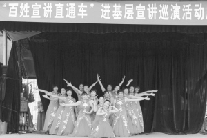 近日,扶溝縣“百姓宣講直通車”進基層宣講巡演活動巡回各鄉鎮行政村進行宣講,受到群眾的熱烈歡迎和稱贊。圖為“百姓宣講直通車”在該縣韭園鎮演出。(黃金峰 潘曉康 攝)