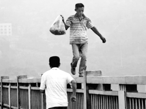 本報綜合消息 一位年過半百的老伯,竟然踩在大橋的欄桿上,閑庭信步(下圖)……這并非是武俠片中的片段,而是9月3日7時,掌上拍客張先生在重慶石板坡長江大橋拍攝到的一幕,張先生說,老伯在欄桿上行走的速度不輸給常人在大道上步行的速度。同時在網上,也有很多網友稱目擊到了這一幕,并將當時的所見所聞發在了網上,很多網友都稱老伯為“輕功哥”。
