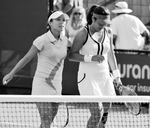 鄭潔和詹詠然今年2月開始搭檔打雙打。昨天面對兩位身高都超過1.80米的對手,她倆以穩(wěn)健多變的底線球和積極上網牢牢掌握著場上主動權,勝得十分輕松。