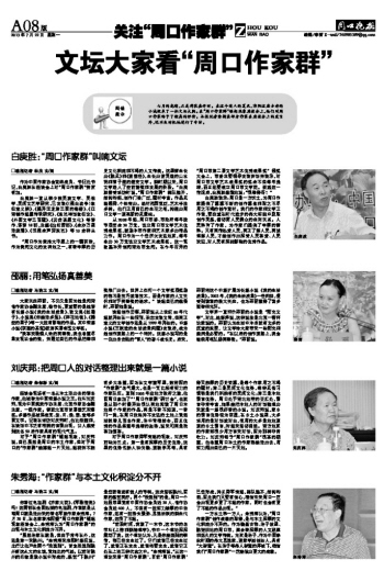 對于周口作家異軍突起的現象,劉慶邦歸納為三點:第一是有深厚的歷史優勢,這里的優勢包括人祖伏羲、道教李耳等,具有得天獨厚的歷史資源,是每個作家用之不竭的題材;第二是民間文化優勢,每種風俗習慣都是我們所獨有的民間文化;第三是本地語言優勢,周口處于南北地帶的交匯處,語言非常豐富,如果能把本地人的對話整理出來就是一篇很好看的小說。劉慶邦說,家鄉的語言優勢較為明顯,在鄉土小說里,大多采用的是對話或對白,使用的大多是地地道道的鄉土語言,聽起來親切自然。南方地區的作家卻很少用方言來對話,因為那樣非常吃力。劉慶邦寄予“周口作家群”很高的期望,他希望周口本土的作家都能走出去,用實力闖出自己的一片天地。