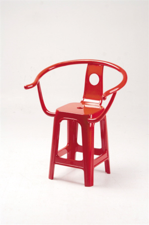 臺灣的夜市和大排檔往往讓許多去臺灣旅行的人流連忘返,大排檔里許多簡易的塑料凳子也讓人印象深刻,如果將這款凳子和圈椅結(jié)合起來會是什么樣子呢?設(shè)計(jì)師吳孝儒的這款圈凳,將幾千年前的圈椅和如今的速食文化融合,從材質(zhì)、線條設(shè)計(jì)融入了中西方跨越文化,讓人似乎有一邊看著古裝劇一邊吃著大排檔的感覺。